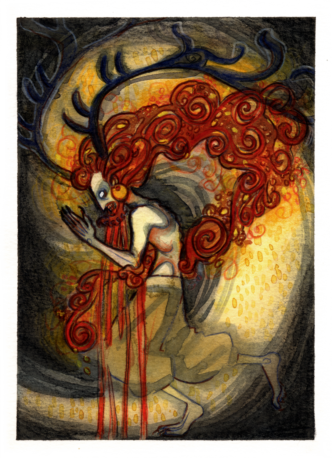 Print of Loki, trickster of Norse mythology, being chaotic.
