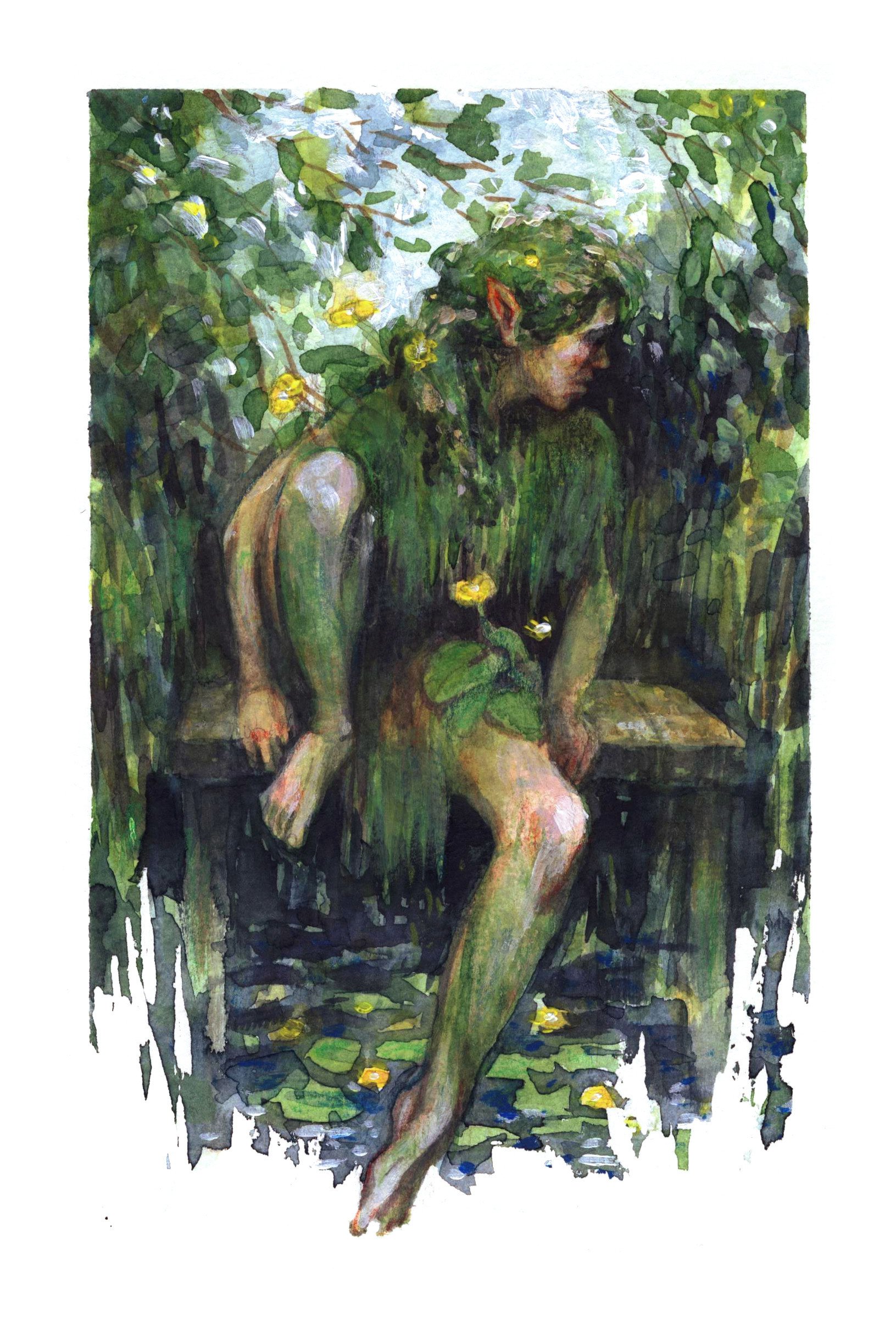 10x15 cm (3.9x5.9 in) print of a nature nymph. Signed on the back.